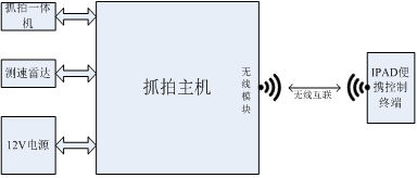 測(cè)速抓拍系統(tǒng)主要由高清抓拍一體機(jī)、平板測(cè)速雷達(dá)、鋰電池、無(wú)線模塊、便攜控制終端等組成,可以滿足正常的測(cè)速抓拍需求。雷達(dá)工作時(shí)將檢測(cè)到的車輛速度傳送給抓拍相機(jī),相機(jī)接到雷達(dá)發(fā)給的信號(hào)觸發(fā)抓拍,將抓拍的照片送到處理單元存儲(chǔ)并通過(guò)顯示單元實(shí)時(shí)顯示。